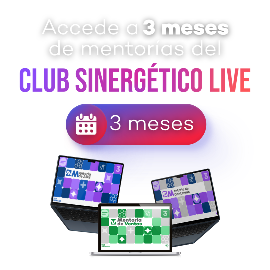 Accede a clases en vivo con tus mentores y especialistas en liderazgo, pauta digital, monetización, ADN de marca y automatización de ventas.